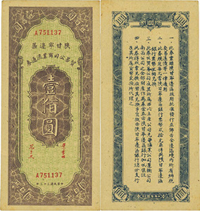 抗日戰(zhàn)爭爆發(fā)后,1937年9月下旬,八路軍第一二零師進入晉西北地區(qū),創(chuàng)立了晉西北抗日根據(jù)地,建立了興縣農(nóng)民銀行。到1938年12月,開辟了以大青山為依托的綏西、綏南、綏中三塊游擊根據(jù)地,并逐步同晉西北根據(jù)地連成一片,構(gòu)成晉綏抗日根據(jù)地。1940年5月,以興縣農(nóng)民銀行為基礎(chǔ),成立了晉西北農(nóng)民銀行,后改為西北農(nóng)民銀行,發(fā)行西北農(nóng)民幣,流通于晉綏地區(qū)。后晉綏邊區(qū)與陜甘寧邊區(qū)統(tǒng)一為西北解放區(qū),該行與陜甘寧邊區(qū)銀行合并,統(tǒng)稱西北農(nóng)民銀行,西農(nóng)幣成為整個西北解放區(qū)統(tǒng)一本位幣。從1940年5月-1948年11月,西北農(nóng)民銀行共發(fā)行貨幣15種面額,26種票樣,約3.8億張,合計約為6439億元。