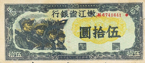 在抗戰(zhàn)勝利結(jié)束時(shí),山東解放區(qū)已有極大發(fā)展,有12.5萬平方公里的面積,占山東總面積的92%,擁有2400萬人口,占山東總?cè)丝诘?0%。1948年10月,山東的北海銀行幣與華北的冀南銀行幣、晉察冀邊區(qū)幣固定比價(jià)互相流通,1948年11月16日起,北海銀行幣與華中銀行幣等價(jià)流通。這一時(shí)期的北海銀行幣均不加蓋地名,便于山東以外的地區(qū)流通。1948年12月1日,華北銀行、北海銀行、西北農(nóng)民銀行合并,在石家莊成立中國(guó)人民銀行,但因工作的需要,北海銀行繼續(xù)營(yíng)業(yè),1949年1月底開始回收北海銀行幣,同年11月1日改稱中國(guó)人民銀行山東分行,至此,北海銀行完成了它的歷史使命宣告結(jié)束。