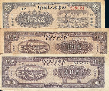 抗日戰(zhàn)爭(zhēng)勝利后,內(nèi)蒙古人民最早實(shí)現(xiàn)了民族區(qū)域自治,1946年,東蒙古人民自治政府在烏蘭浩特成立,開始印發(fā)“人民自治政府政府暫行流通券”,起初在東北范圍內(nèi)流通。1947年5月,內(nèi)蒙古自治區(qū)人民政府成立,流通券改名為內(nèi)蒙幣,并逐漸進(jìn)入到原蒙疆地區(qū)開始流通,成為內(nèi)蒙古地區(qū)百姓常用貨幣。