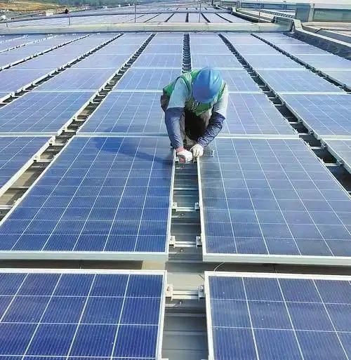 ▲運維人員正在檢查站房屋面光伏組件