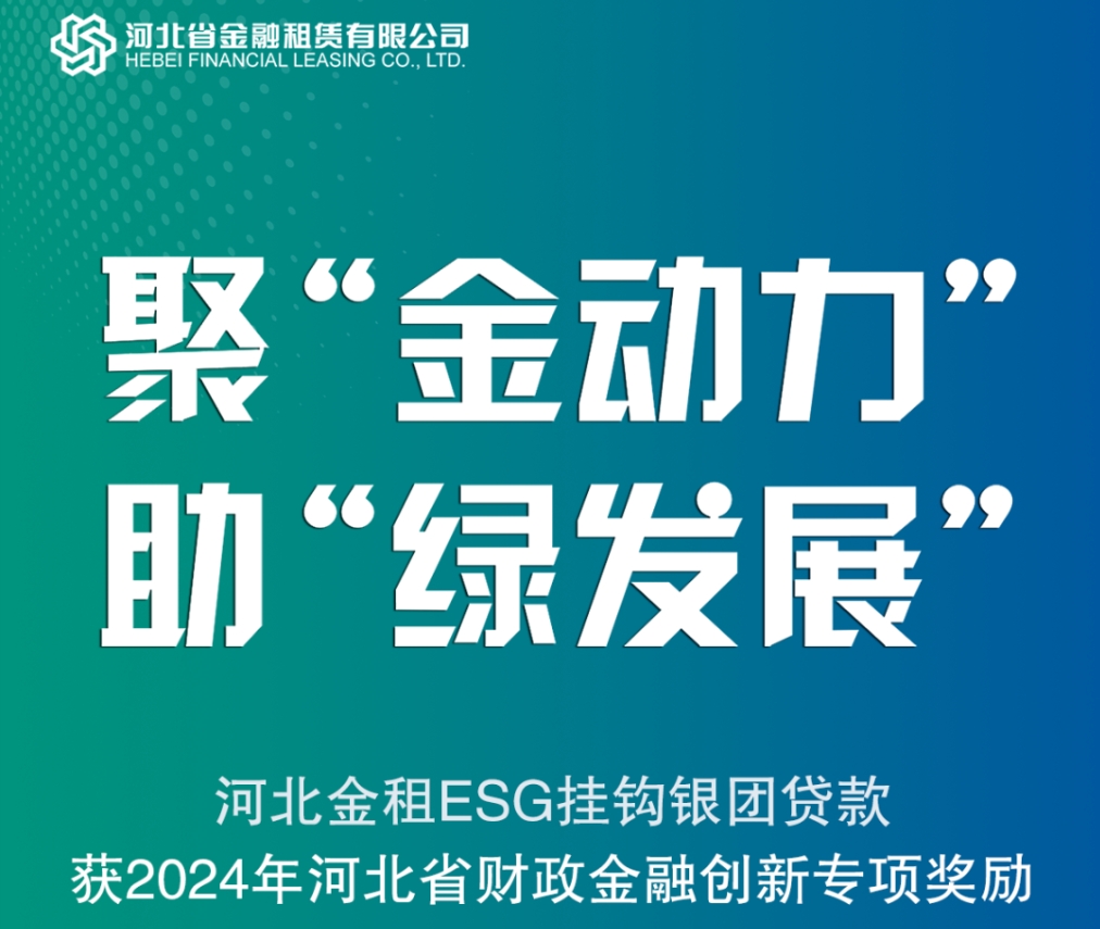 2024-06-06河北省財政2024年“合力支持企業發展專項資金項目”評選結果日前公示,河北省金融租賃有限公司(以下簡稱“河北金租”或“公司”)ESG掛鉤銀團貸款項目在評選中脫穎而出,獲得金融創新類專項獎勵。公司履行企業社會責任,探索綠色租賃業務…