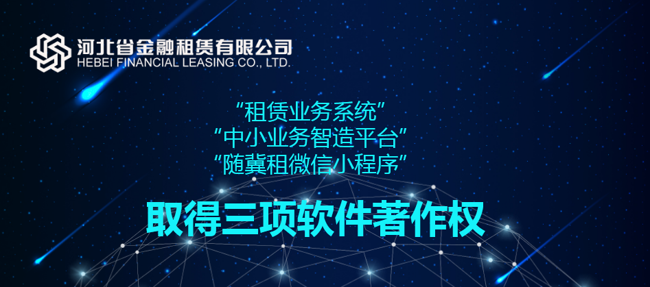 2023-04-10近日,由河北省金融租賃有限公司(以下簡稱“河北金租”)研發的“中小業務智造平臺”、“租賃業務系統”、“隨冀租微信小程序”三件軟件成果正式通過國家版權局審核,獲得計算機軟件著作權,此舉進一步完善了河北金租知識產權保護體系,也…